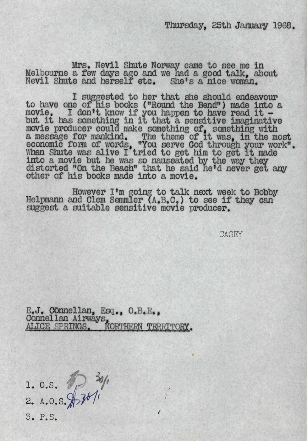 All 5 actors state their purpose in Australia (acting), and give their intended Australian addresses as care of Stanley Kramer Productions. American director Kramer both produced and directed the film.