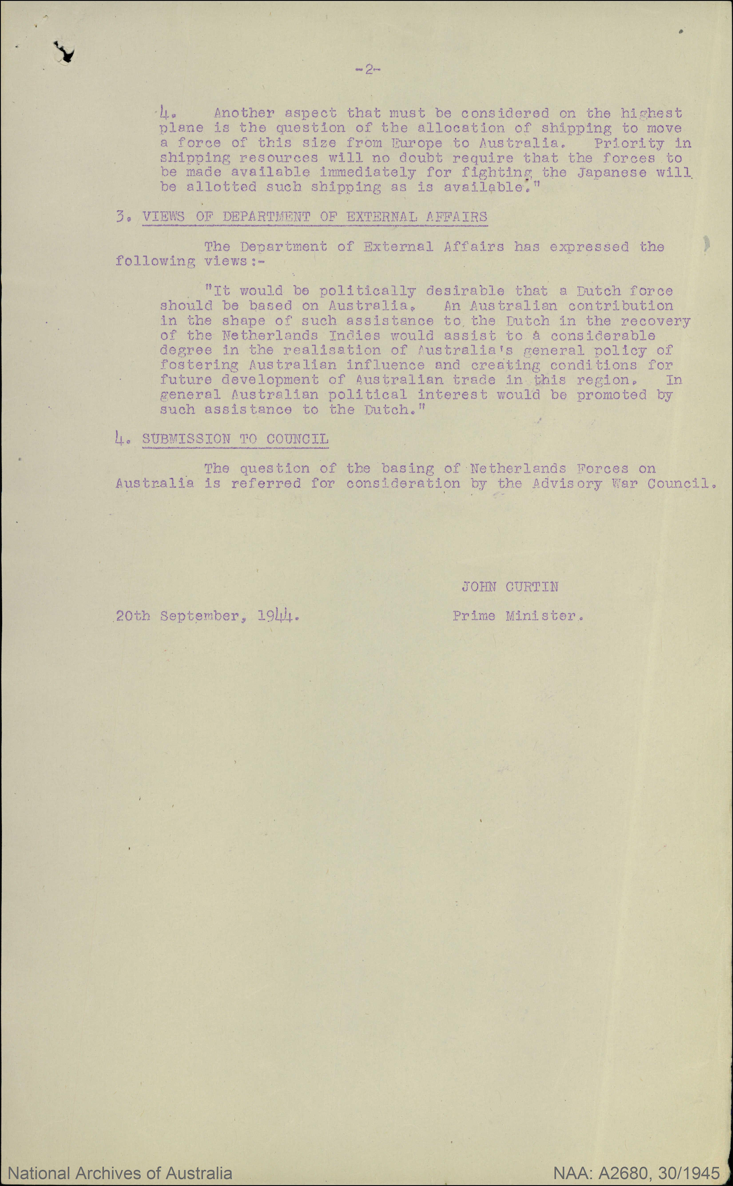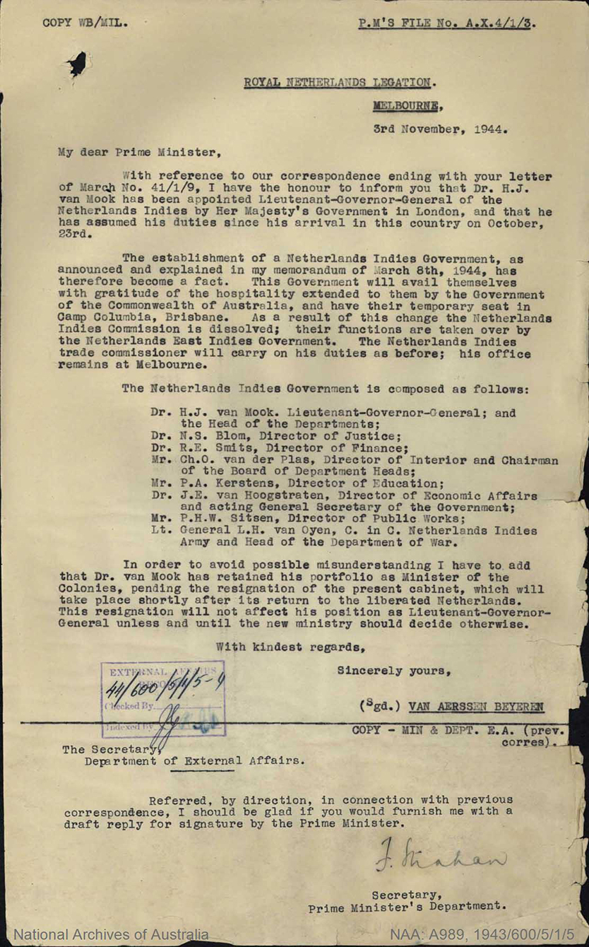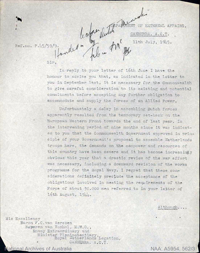 The Dutch government began planning its return to the NEI, to ensure they reclaimed the territory as soon as the Japanese were defeated. For this, they needed somewhere nearby to plan and stage their return.