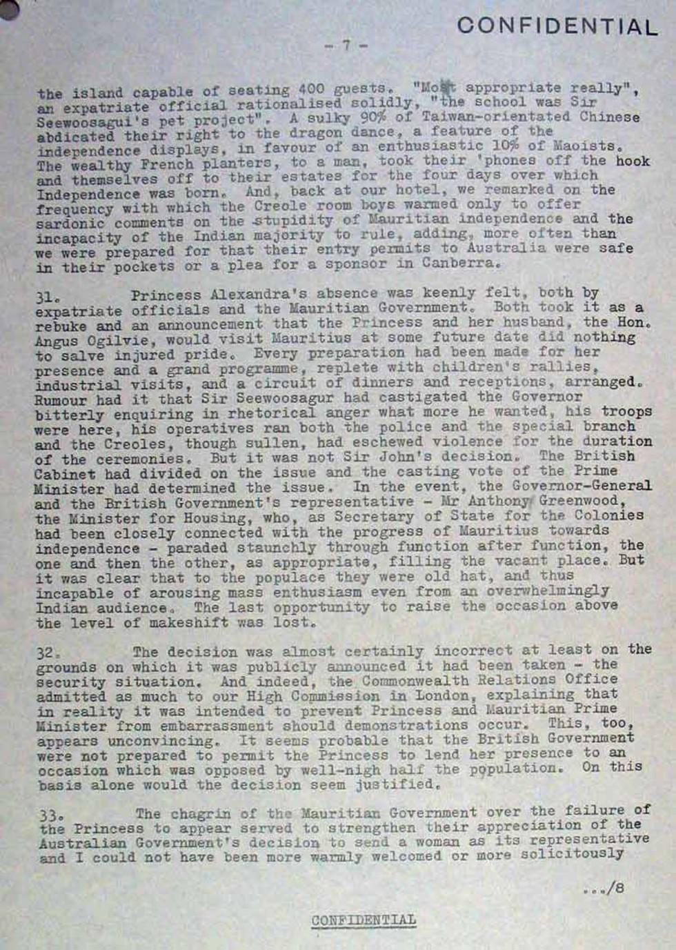 This report was enclosed with a letter to Prime Minister Gorton of 8 May 1968.